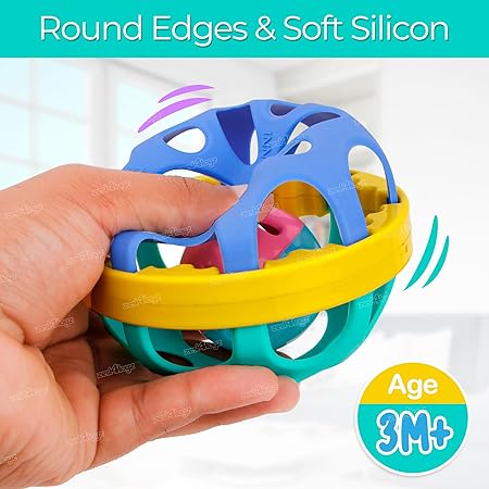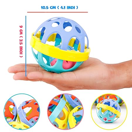 Biggie Ball Rattle Toy – Vibrant Multicolor Baby Rattle with Soft Sounds for Newborns & Infants | Safe, Non-Toxic Sensory Toy for Early Development (Single Pack)