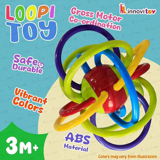 Loopitoy 2-in-1 Baby Rattle & Teether – Soft & Safe Teething Toy with Built-in Rattle Sound for Newborns & Infants | BPA-Free, Easy to Hold, Multi-Color Sensory Toy for Babies 0-12 Months