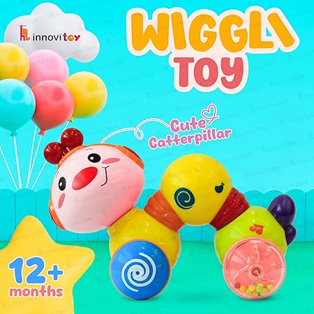 DN TOYS Musical Wiggle Worm Toddlers Toys with Music and Light | Mini Crawling Caterpillar Toy for 1+ Year Kids | Twist, Press and Go Baby Skills Developmental Toy for Boys and Girls