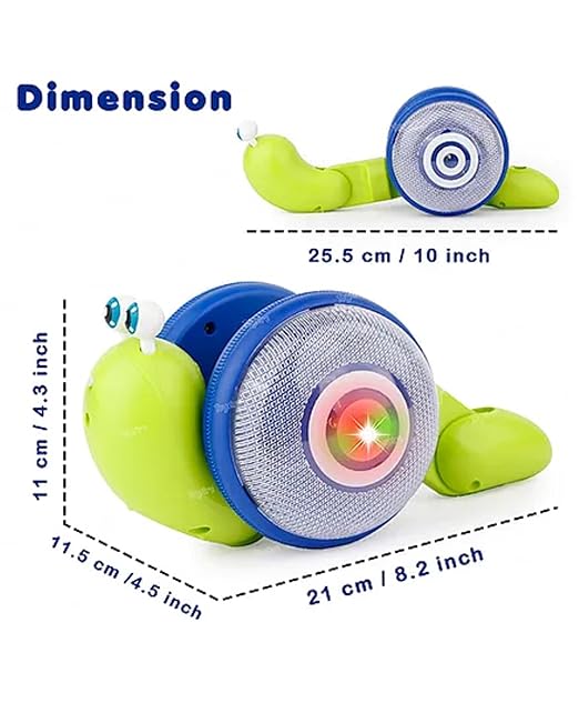 DN TOYS Pull Along Musical Snail Baby Toys | String Attached Wiggle Motion Toy with Music, Light and Rope | BPA Free Toddler Toys Gift Set for 12+ Months Kids | Made in India